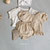 バルーンシルエットの袖口が可愛いベビーブラウスセットアップ。ボトムスはブルマパンツスタイルになります。股下にはスナップボタンがあり着用のままオムツを交換できます。トップスの後ろ身頃の襟ぐりにボタンがあり、頭が大きいお子さんでも簡単に脱ぎ着できます。